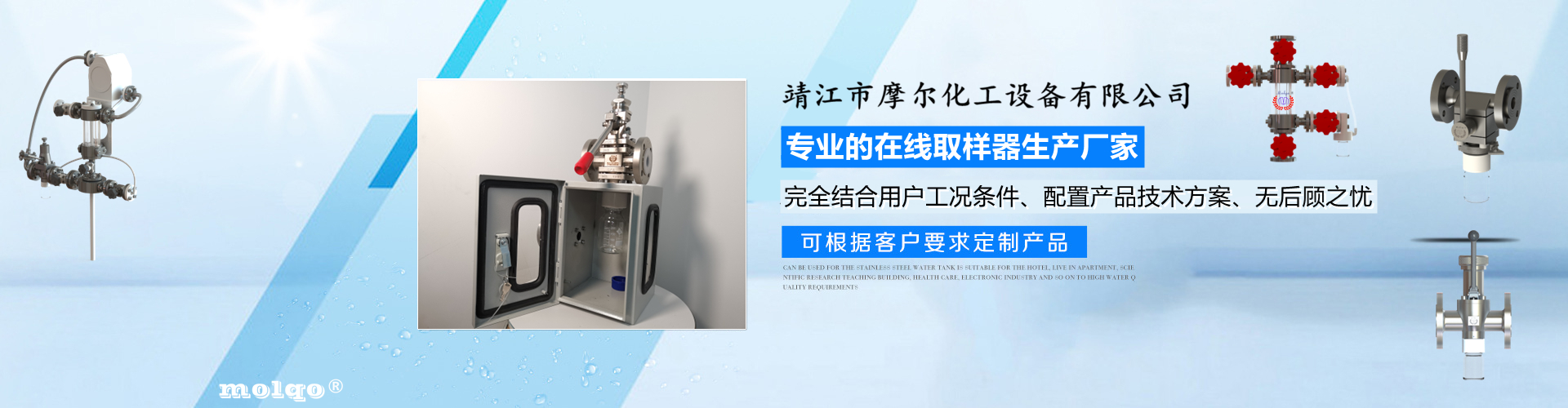 靖江市摩爾化工設備有限公司位于蘇中明珠——江蘇省靖江市城南工業園區東進路北側天元艾爾瑞內,另有生產基地位于靖江市經濟技術開發區新號路1號鼎電科技園內。我公司由數名長期從事化工生產、氟塑襯里模具開發以及機械自控設備的專業人員共同合作成立,致力于提供客戶最優的高效在線取樣、反應及精餾分離設備,為客戶提供合理的設備選型方案,以幫助客戶提高綜合生產效率以及改善生產現場環境為目標。 本公司主要制造及銷售的產品有:釜用在線取樣裝置,管道取樣閥,釜用清洗噴淋裝置、搪玻璃設備、GMP專用搪玻璃設備、氟塑襯里設備、攪拌器、釜用機械密封、氣動閥門及搪玻璃管道、襯氟閥門管道、非標不銹鋼容器,精餾塔塔器、片式冷凝器及PTFE密封件、鋯、鈦、鉭、鎳等加工件制品。我司是一家集研發銷售、設計咨詢服務于一體的專業···| 抚顺市 | 光泽县 | 攀枝花市 | 霸州市 | 克拉玛依市 | 高陵县 |